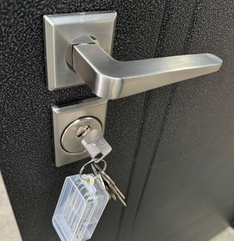 ✔ Основной замок — цилиндровый No-Key 5 ключей, врезная броне-накладка, раздельная фурнитура